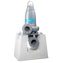 Vertical, permanent, dry pump installation. The submersible pump is installed in a dry pit, with flange connection to suction and discharge piping.