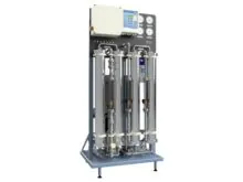 DPRO B1 is a double-pass reverse osmosis unit for industrial applications, requiring conductivities below 2 µS/cm. It provides flow rates up to 1.1 m3/h and can feature low-energy membranes and E-pumps.