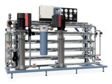 DPRO B2 is a double-pass reverse osmosis unit for industrial applications requiring conductivities below 2 µS/cm. It provides flow rates up to 3.2 m³/h and can feature low-energy membranes and E-pumps.