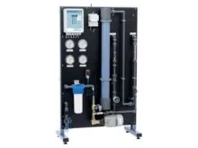 RO A1 is a single-pass reverse osmosis unit suitable for industrial applications requiring low-flow of demineralized water. It features a space-saving design with a prefilter and control unit on the same skid.