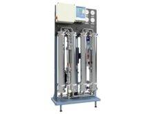 RO B1 is a single-pass reverse osmosis unit with flow rates up to 2.4 m³/h for industrial applications using demineralized water. It features stainless steel membrane vessels, ensuring high durability.